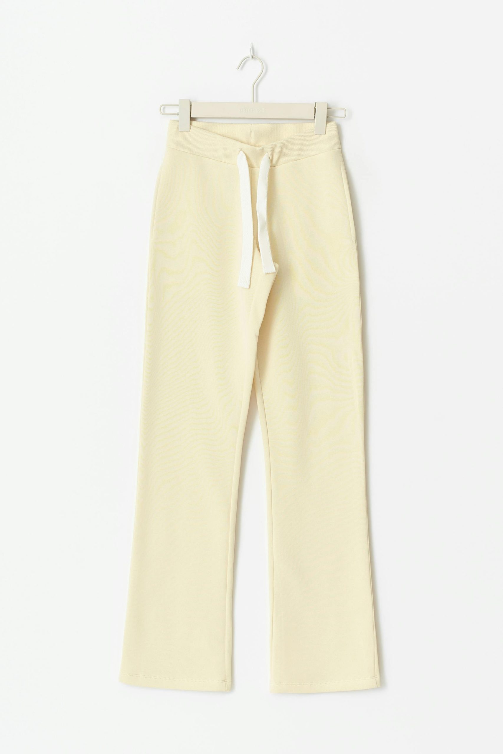 Joggingbroeken met een lage taille en extra-lange benen. De broeken zijn geel en hebben achterzakken. Het heeft verstelbare trekkoorden, brede broekspijpen, zakken in de zijden en normale pasvorm.
