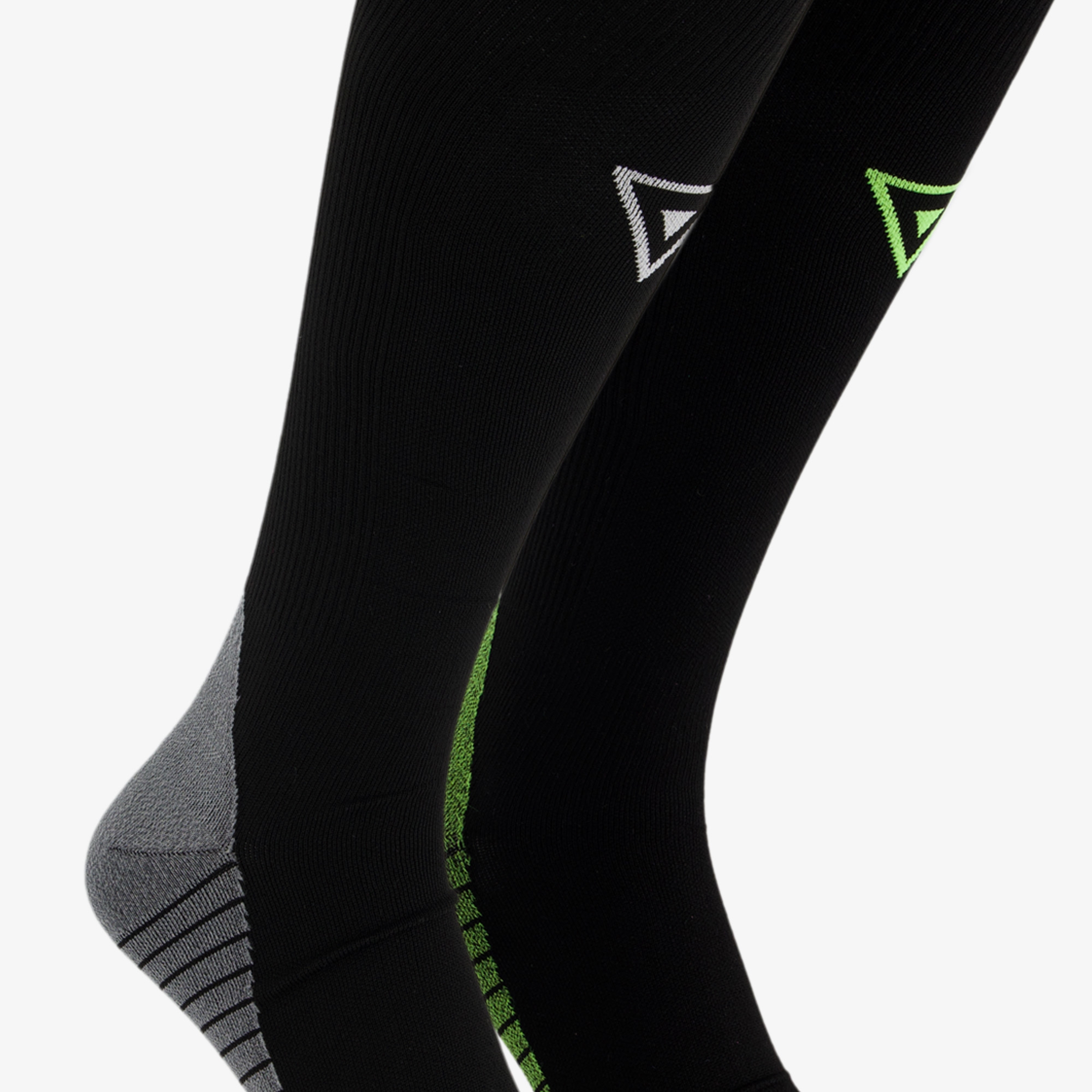 2 paar lange, zwarte compressiesokken van Osaga. De sokken stimuleren de bloedcirculatie door de compressie, helpen de zwelling van de voeten en benen te verminderen en zijn ideaal voor alle sporten. Gemaakt van 94% polyamide 6% elastaan.