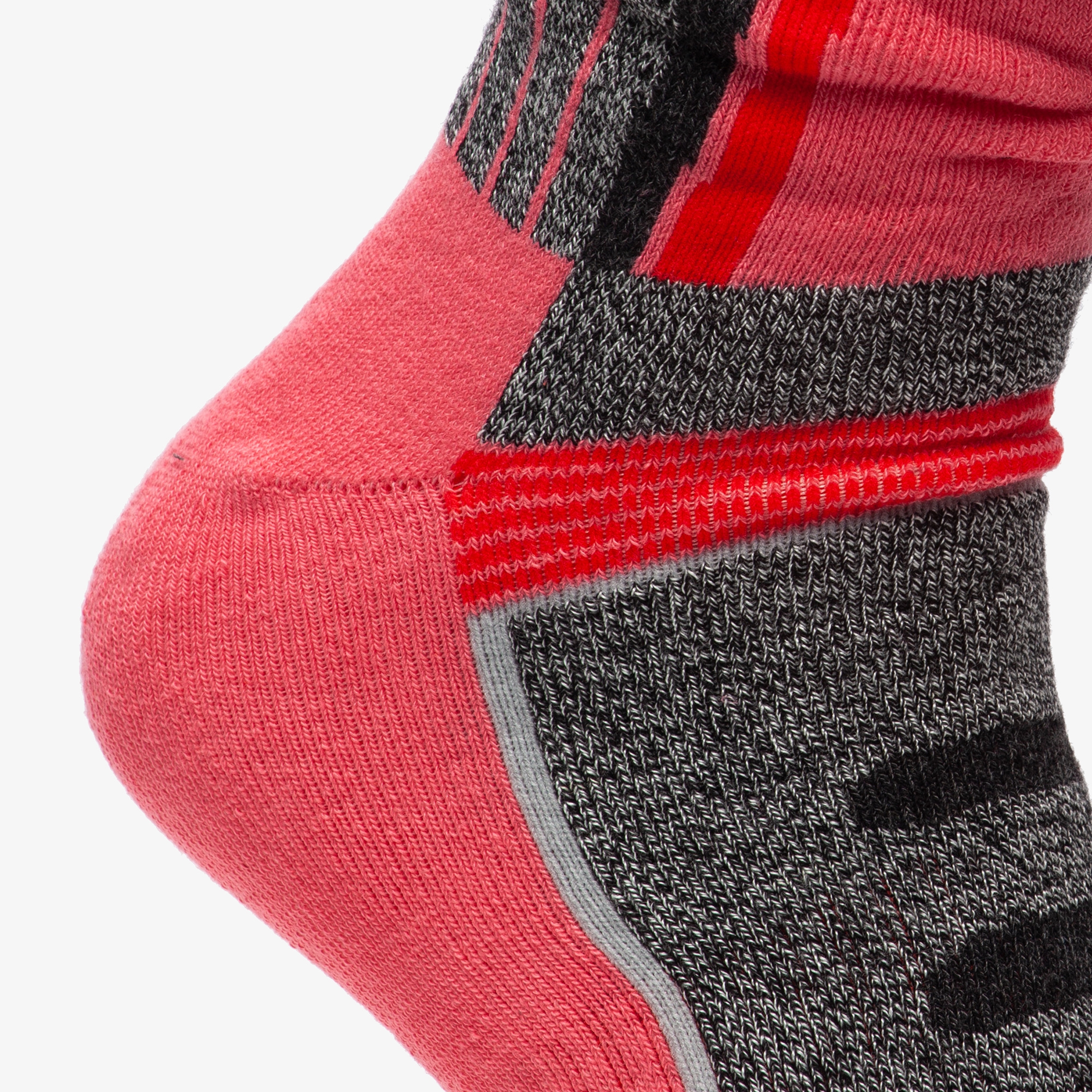 Twee paar skisokken van Mountain Peak. De skisokken hebben een anatomisch gevormd voetbed die opgevuld is voor extra demping en comfort. Voorzien van een elastische wreefband voor extra steun/bewegingsvrijheid, een zachte handgekettelde teennaad en een versteviging in de hak en tenen om slijtage te voorkomen. De skisokken bieden extra bescherming op de enkels en schenen en zijn gemaakt van 75% katoen, 20% polyester en 5% elastaan.