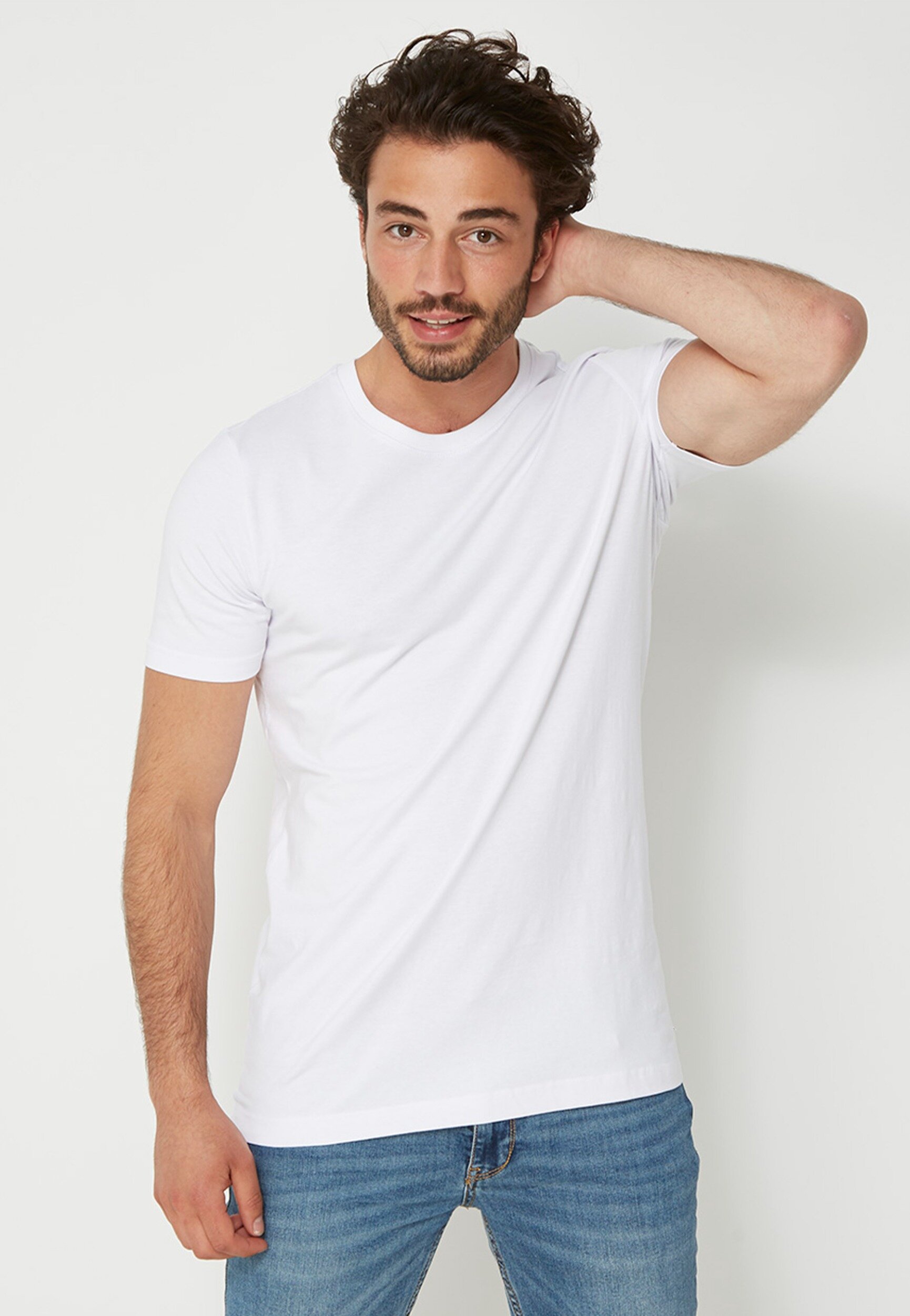 Dit artikel bestaat uit 2 basic heren T-shirts in de kleur wit met een ronde hals. De perfecte basic voor in je garderobe! Het T-shirt heeft een slim-fit, is gemaakt van katoen en schijnt niet door.