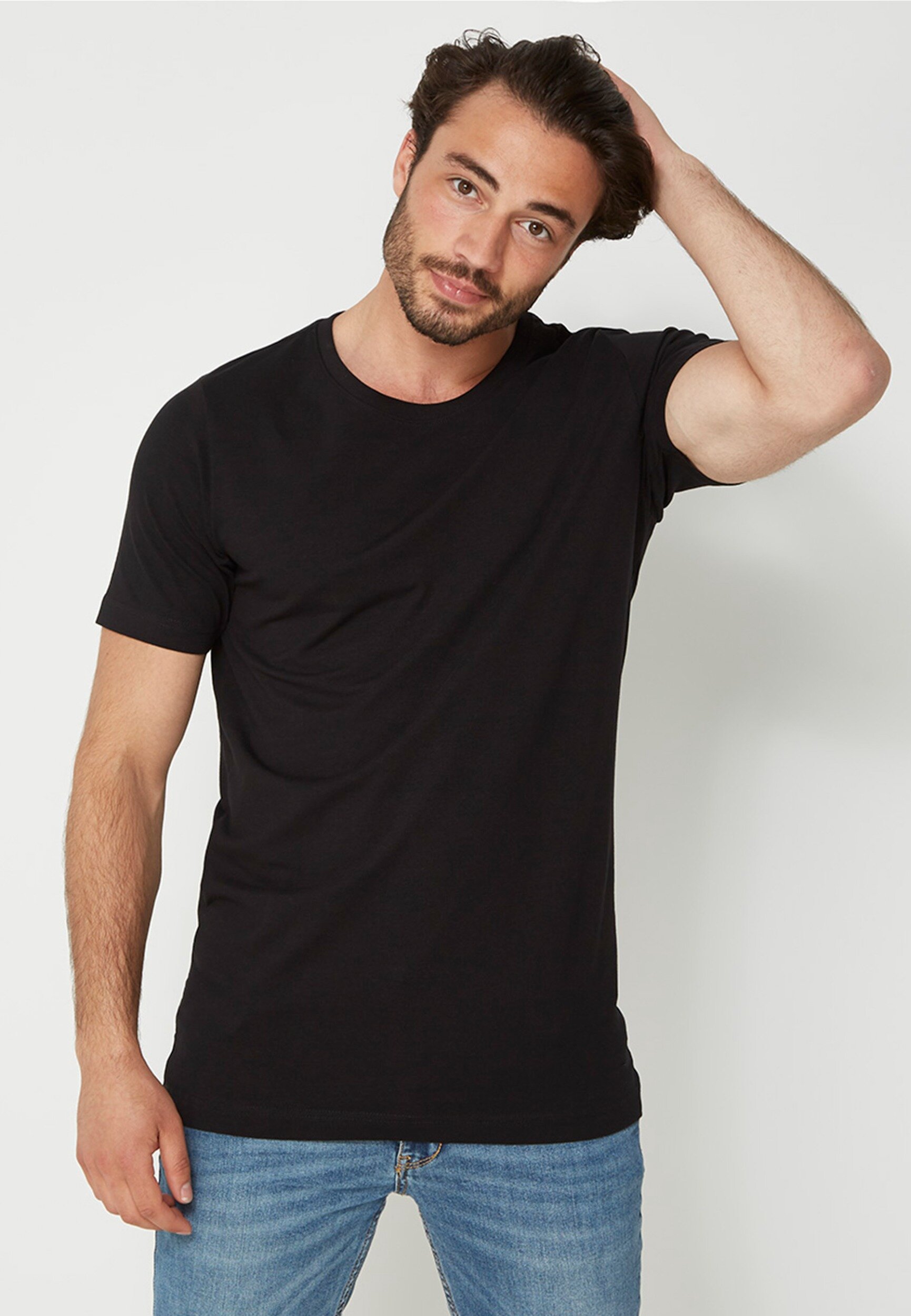 Dit artikel bestaat uit 2 basic heren T-shirts in de kleur zwart met een ronde hals. De perfecte basic voor in je garderobe! Het T-shirt heeft een slim-fit, is gemaakt van katoen en schijnt niet door.