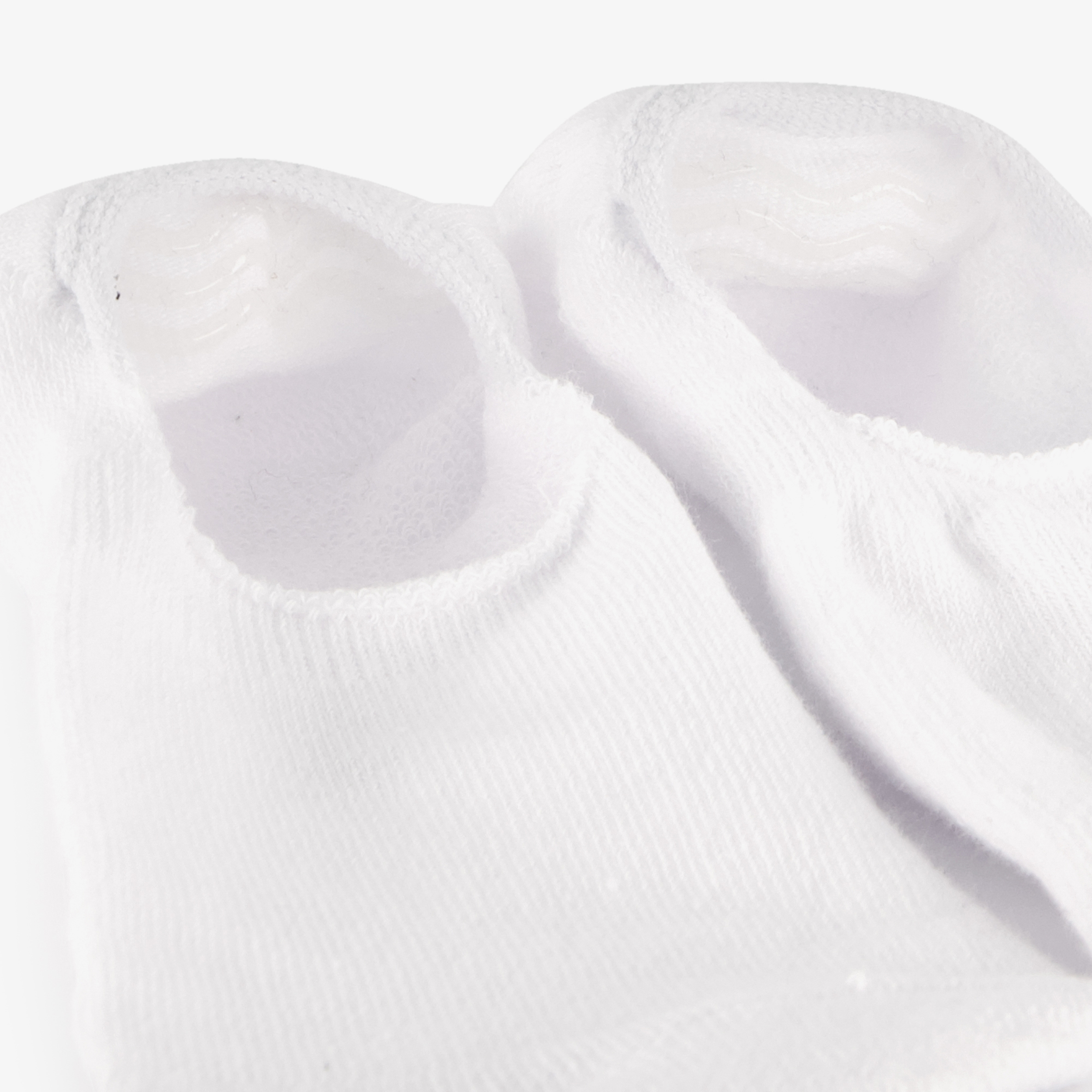 3 paar witte sneakersokken van badstof voor heren. De sokken zijn laag uitgesneden zodat ze niet zichtbaar zijn boven je sneakers. Gemaakt van 75% katoen, 22% polyester en 3% elastaan.