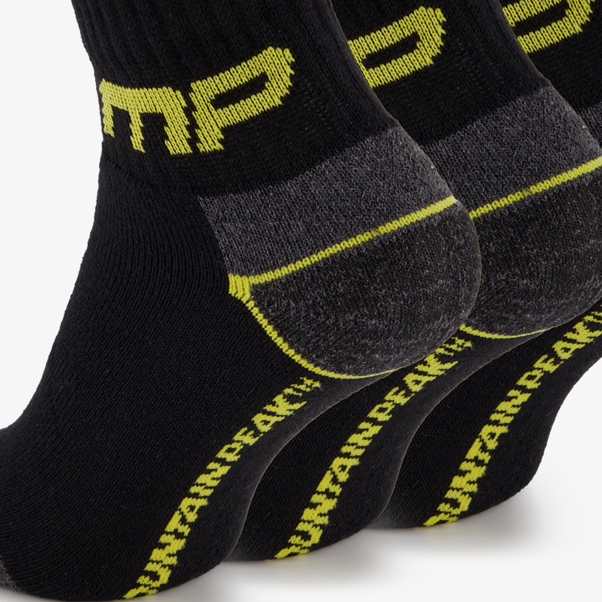 Drie paar werksokken van Mountain Peak. Voorzien van een elastische wreefband en een stevige boord. De sokken zijn extra sterk en gaan hierdoor lang mee. Gemaakt van 63% katoen, 34% polyester en 3% polyamide.