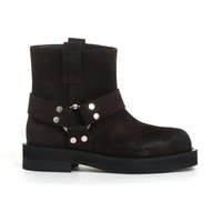 Korte donkerbruine bikerlaarzen van 3Juin combineren comfort en elegantie met een slanke silhouette. Een stijlvolle strap met metalen studs versterkt de edgy esthetiek, waardoor deze laarzen ideaal zijn voor casual uitjes.- Kleur: Donkerbruin- Stijl: Bikerlaarzen- Ontwerp: Slanke silhouette- Strap: Stijlvol met metalen studs- Geschikt voor: Casual uitjesDe vermelde maten zijn Italiaanse maten. Voor de beste pasvorm verwijzen we u naar onze maattabel.