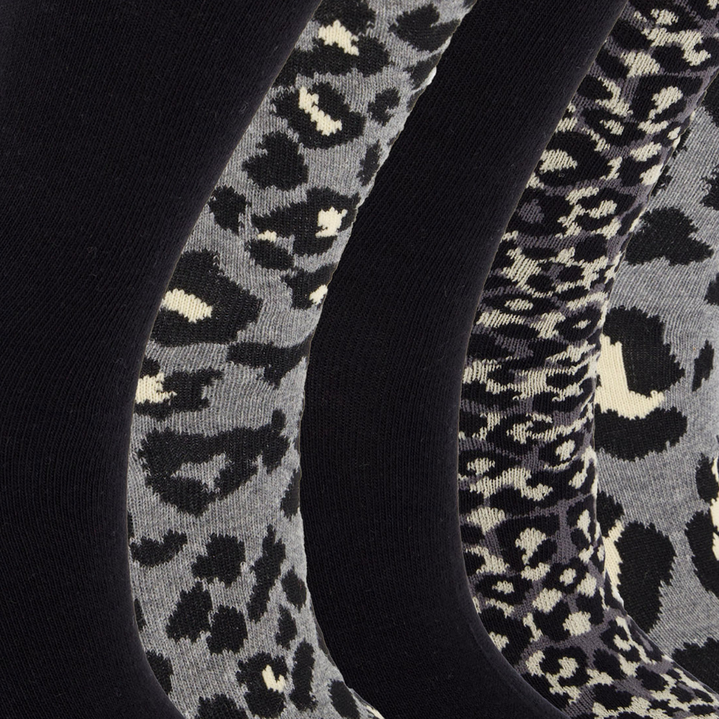 5 paar halfhoge sokken met panterprint voor dames. De sokken zijn gemaakt van 75% katoen, 22% polyester en 3% elastaan.