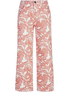 7/8-jeans van MYBC 5-pocketsmodel met goed zittende, verstevigde band en wijde, rechte pijpen. Door de filigraan verwerkte print is elke 7/8-broek uniek. Zonder riem. 97% katoen, 3% elastan. Binnenbeenlengte ca. 68 cm. Voetwijdte ca. 55 cm. Machinewasbaar. wasbaar tot 30°. chloorbleken niet mogelijk. koud strijken. niet chemisch te reinigen. drogen in de droger niet mogelijk. 36, 40, 42, 44, 48