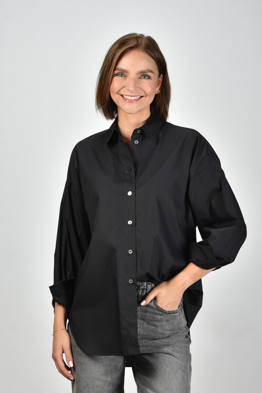 Zie hier de Academia blouse Giorgia in Unito Nero. Deze elegante blouse, vervaardigd uit 100% katoen, biedt een normale pasvorm en is ontworpen voor veelzijdige stylingopties. Perfect te combineren met diverse outfits dankzij zijn tijdloze zwarte kleur. Wasbaar op 30 graden voor langdurig draagplezier. Artikelnummer: GIORGIA-1061-599-Unito Nero.