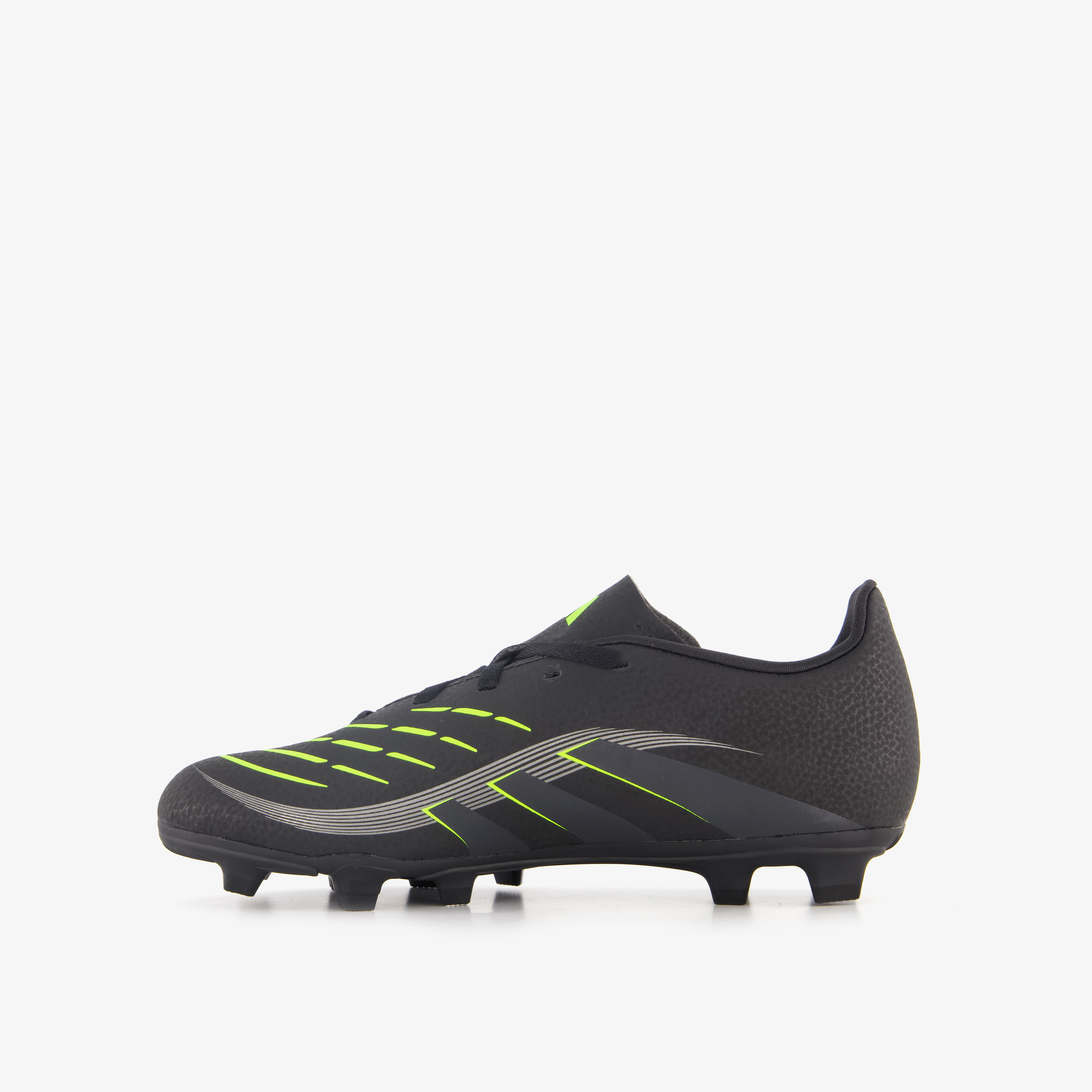 Zwarte Adidas Predator Club voetbalschoenen voor kinderen. Gemaakt van imitatieleer met een binnenwerk van textiel en een Multi Ground (MG) zool van rubber. Voorzien van een vetersluiting en een comfortabele, uitneembare binnenzool van textiel. De veldschoenen hebben groene details en Adidas 3-Stripes op de zijpanden.