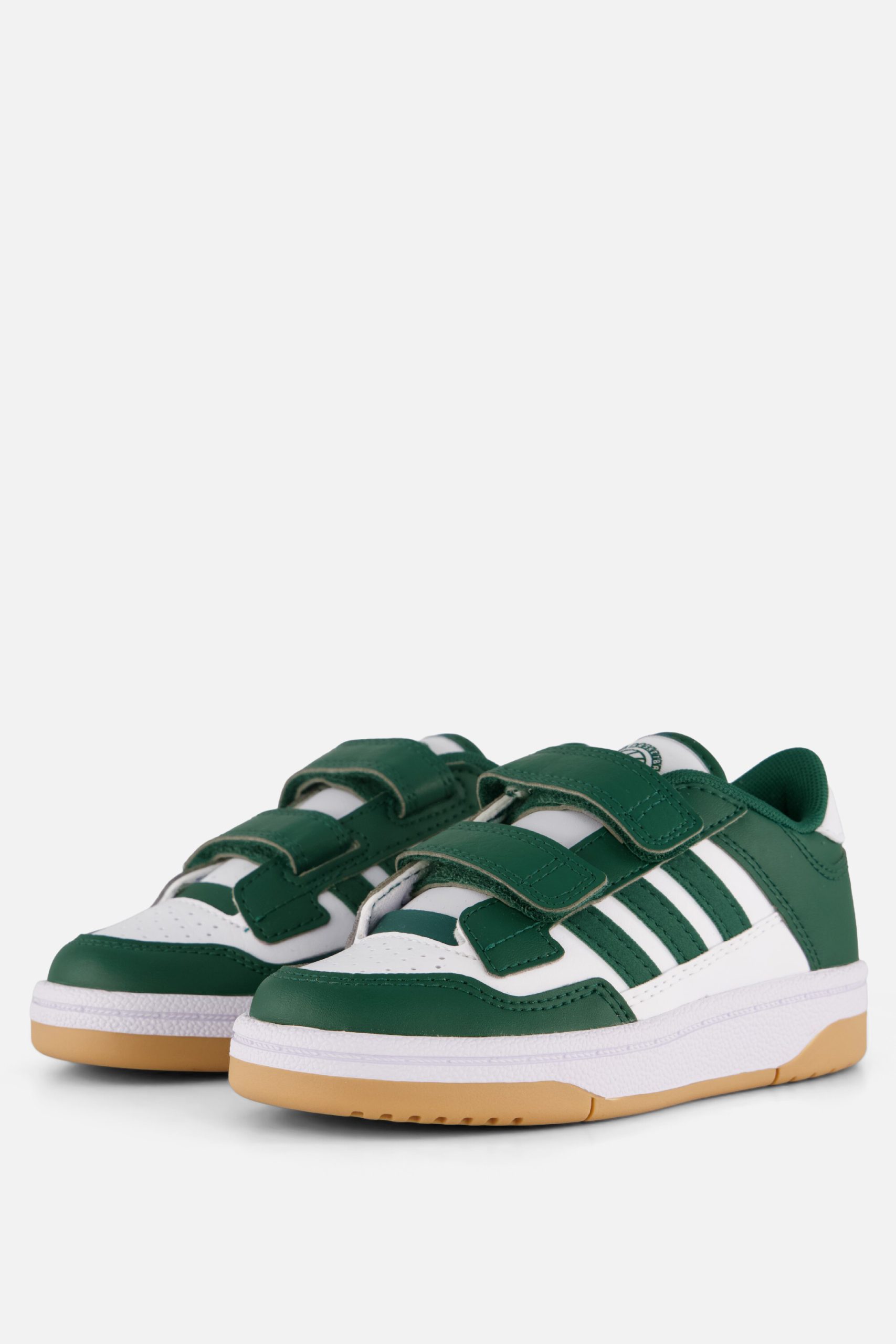 Deze Adidas Rapid Court sneakers zijn gemaakt van minstens 20% gerecyclede materialen. Met een bovenwerk van synthetisch leer staan deze low-tops helemaal in het teken van die klassieke basketbal-look. Dankzij de klittenbandsluiting zijn ze makkelijk aan en uit te trekken, zodat je kind minder tijd hoeft te besteden aan zich klaarmaken en meer aan pronken met deze kicks.