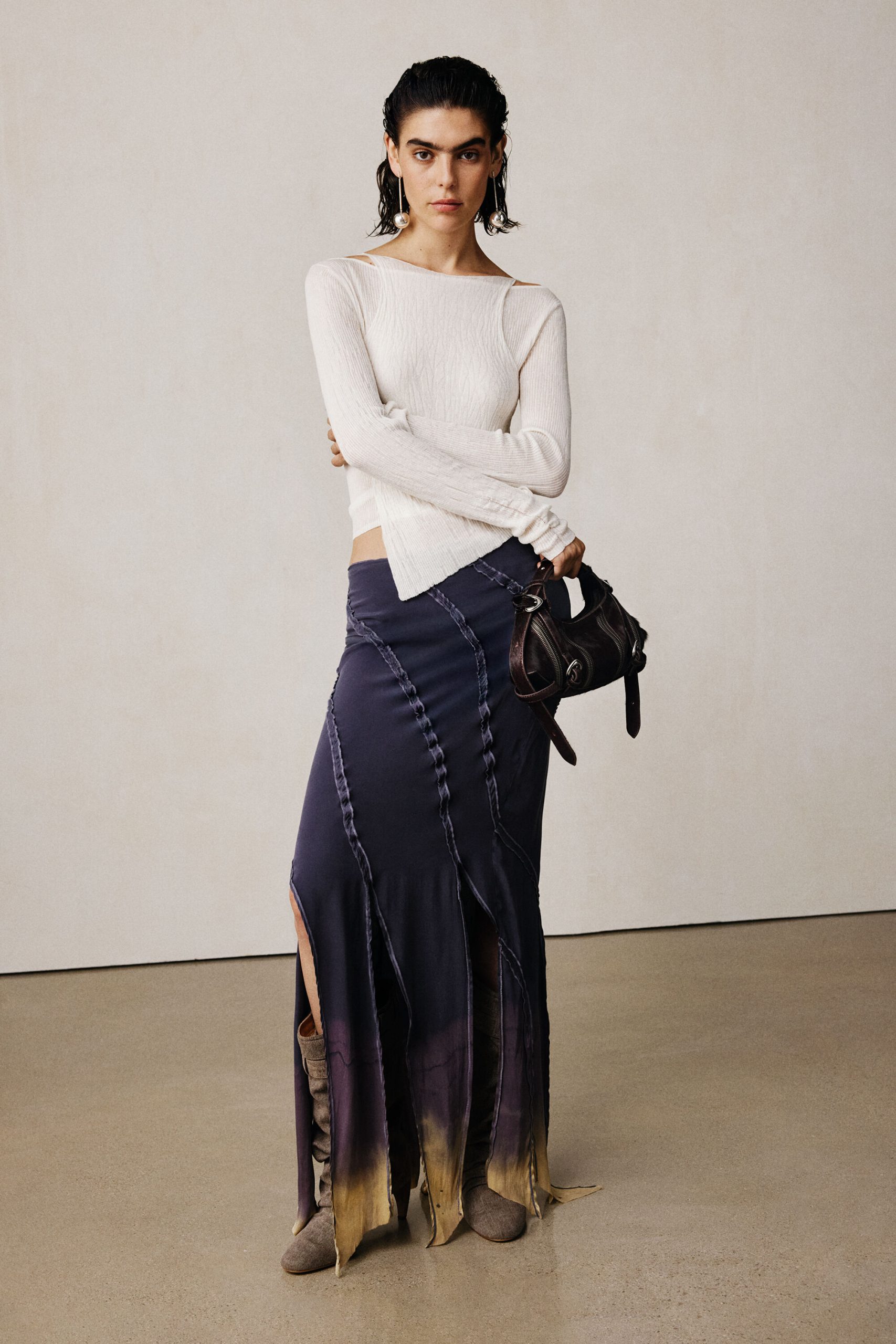 Afneembaar wollen T-shirt met optie voor bandjes of boothals, in effen kleur en lichtgewicht stof.