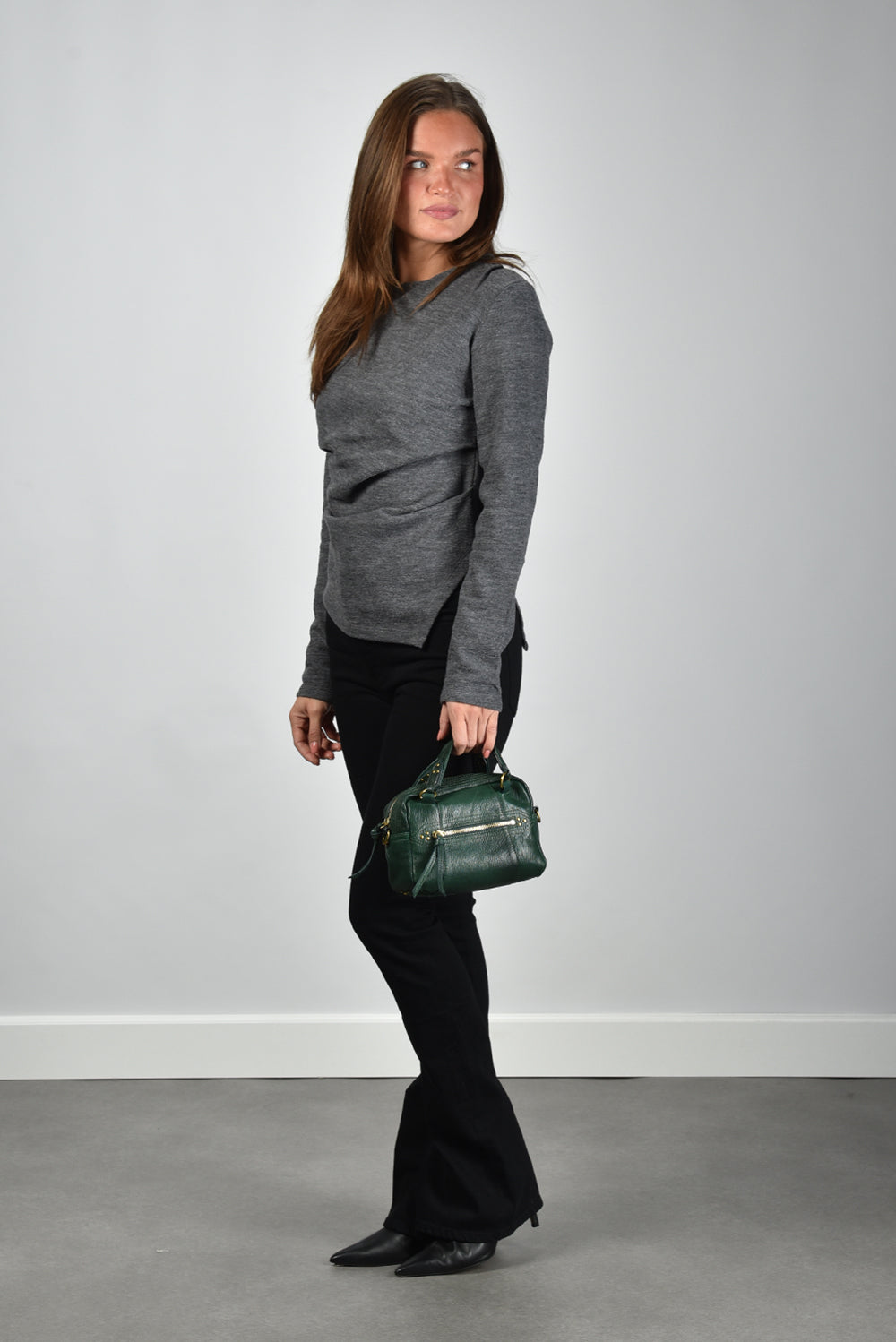 De jeans Ingram immersion van Agolde heeft een flatterende, aangesloten pasvorm die richting de knie strak sluit en daarna elegant uitloopt. De egale zwarte kleur geeft het flared silhouet extra diepte en maakt de denim geschikt om met diverse stijlen te dragen. Door het gebruik van 99% katoen voelt de stof stevig maar soepel aan, met net genoeg stretch door de kleine toevoeging elastane. Agolde, het denimlabel uit Los Angeles, staat bekend om modern design en zorgvuldig vakmanschap. Die kwaliteit voel je meteen in de constructie en afwerking van deze jeans. Combineer de Ingram immersion met de handtas Lucky Bowling Mini van Jerome Dreyfuss voor een evenwichtige set met karakter.