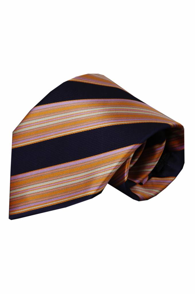 Blauwe stropdas, oranje & lila gestreept. Made in Italy v. 100% Italiaanse zijde, lusje, binnen dezelfde stof, zadelsteek! Shop online bij Italian Design!