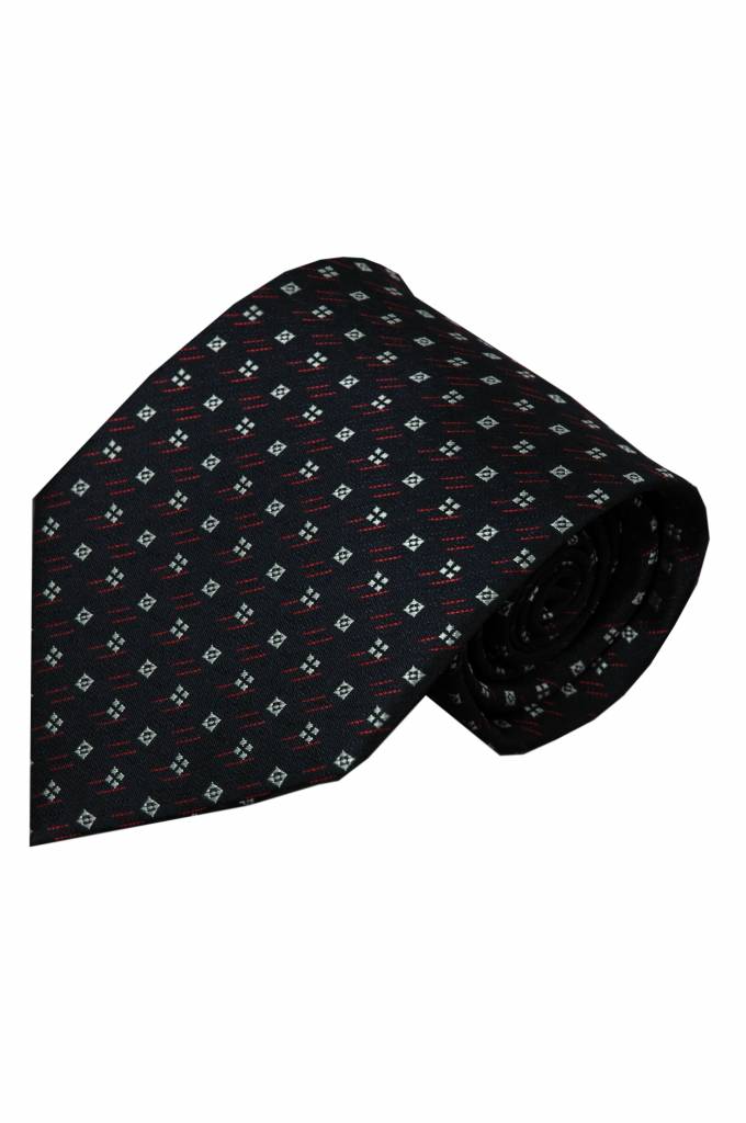 Blauwe stropdas met witte blokjes en diagonale rode streepjes. van Italiaanse zijde, vanbinnen dezelfde stof, lusje, zadelsteek. Shop online bij Italian Design!