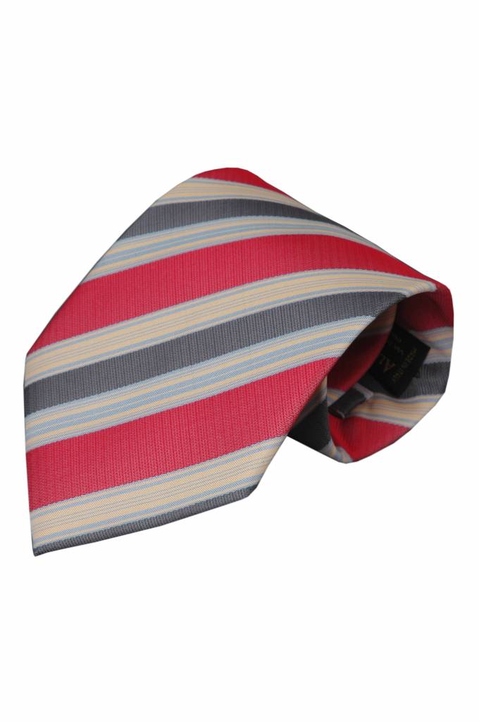 Rode stropdas, grijs & geel gestreept. Made in Italy das v. 100% Italiaanse zijde, lusje, binnen dezelfde stof, zadelsteek! Shop online bij Italian Design!