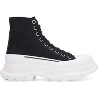 Verhoog je straatstijl met de Treadslick High Top Sneakers van Alexander McQueen. Gemaakt van premium 100%’ canvas, tonen deze zwarte sneakers een ronde neus en een onderscheidende veter sluiting aan de voorkant. Het gedurfde ontwerp bevat iconische logodetails aan de zijkant en achterkant, aangevuld met een stevige witte zool die hun moderne uitstraling versterkt. Een must-have voor de modebewuste persoon, deze sneakers combineren moeiteloos stijl en comfort in elke stap.- 100%’ canvas materiaal- Ronde neus ontwerp- Veter sluiting aan de voorkant- Iconische logodetails- Stevige witte zoolDe vermelde maten zijn Italiaanse maten. Voor de beste pasvorm, raadpleeg alstublieft onze maattabel.