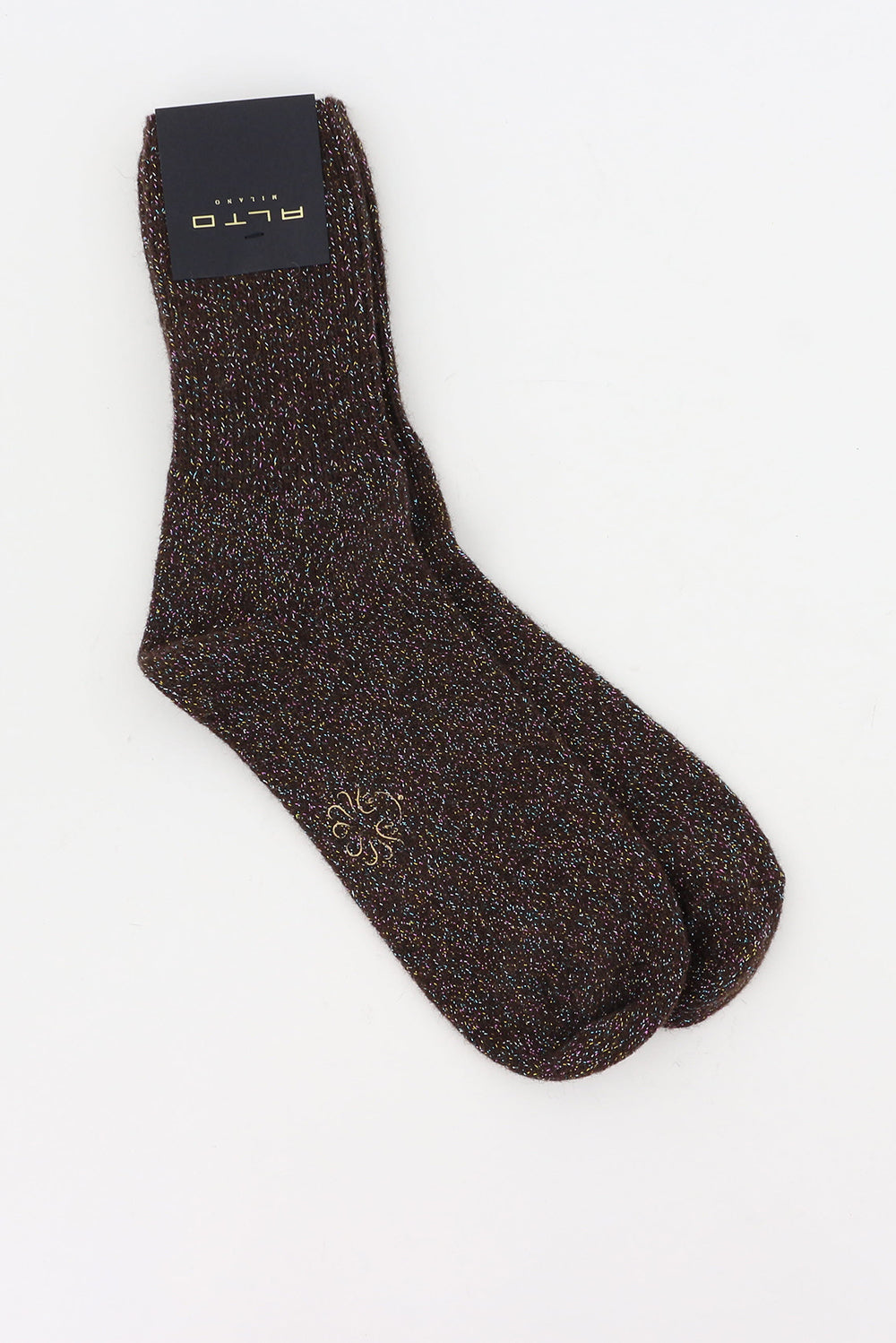 Deze halfhoge sokken met glitter van Alto Milano brengen een subtiele glans in een diepe bruine tint. De bordeauxkleurige draad geeft een warme nuance die mooi uitkomt bij leer, wol of denim. De mix van merinowol en cashmere voelt zacht en vormt zich soepel om de voet, terwijl viscose en polyamide zorgen dat de stof sterk blijft. Typisch Alto Milano: Italiaans vakwerk met aandacht voor detail dat je direct herkent als je ze aantrekt. Combineer ze eenvoudig met de Alto Milano sokken 25AIAM1440DC nero voor een stijlvolle variatie in je lade.