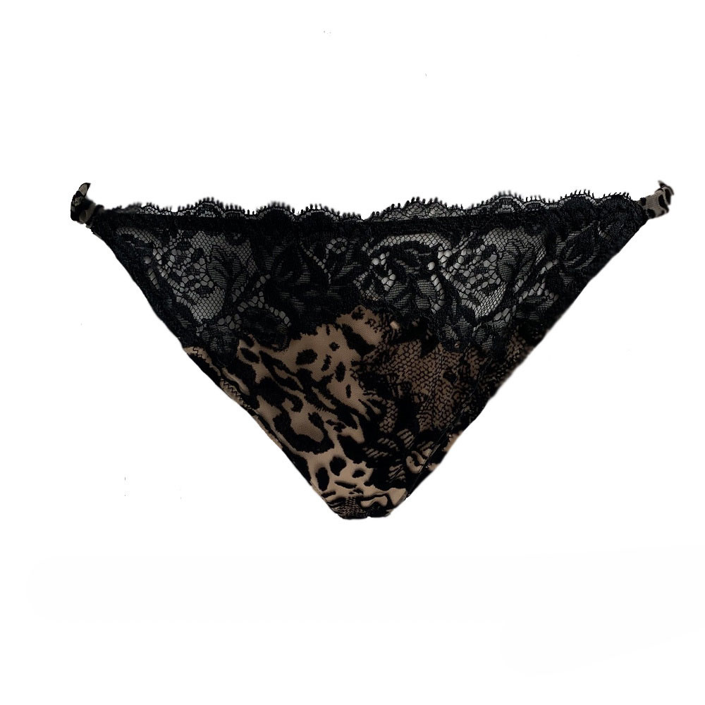 Zoek je een zwart/bruine Tanga? 'n mooie Tanga: animal/bloem/dessin en echt kant? Shop je AMBRA lingerie DARK nu online bij Italian Design! Shop nu Hier