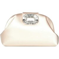 Amina Muaddi introduceert een verfijnde clutch van champagne satijn, gekenmerkt door een rechthoekige spiegelaccessoire aan de voorkant. Een gestructureerde silhouette en een delicate schouderband van ketting versterken de elegantie, waardoor het een essentieel accessoire is voor verfijnde gelegenheden.- Samenstelling: 100%’ Raso – Afmetingen: Niet gespecificeerd – Stijl: Clutch Bag – Merkomschrijving: Niet gespecificeerd