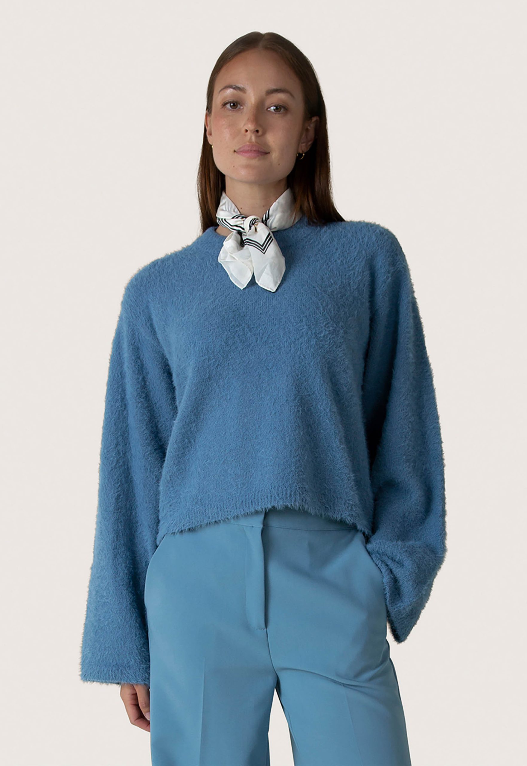 Dit is de T02-525189 Amaya Trui van het merk Another Label. De trui heeft een loose fit met verlaagde schouders en wijde mouwen.