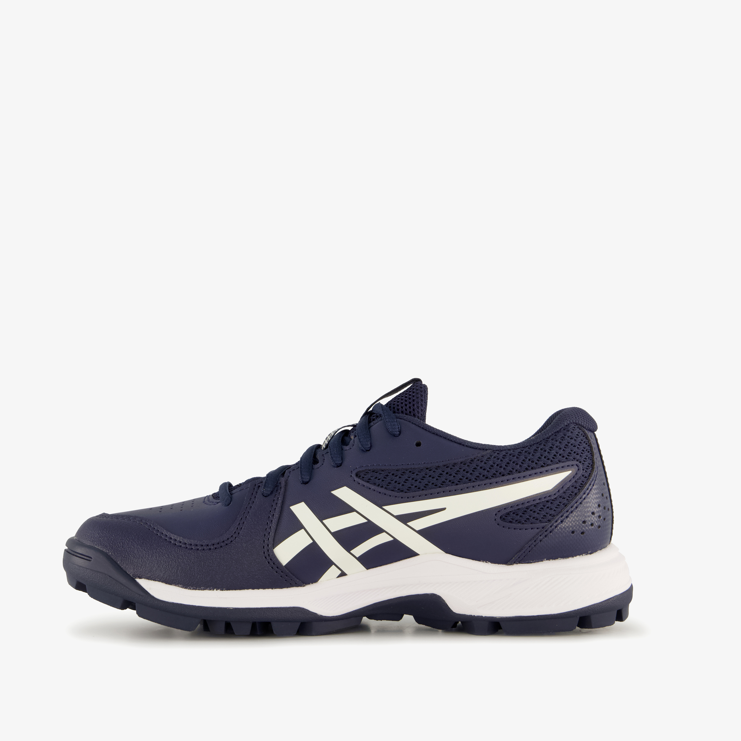 Zwarte Asics GEL-PEAKE 3 GS hockeyschoenen voor dames. Voorzien van een stevig bovenwerk van imitatieleer met verstevigingspanelen voor extra ondersteuning. De schoenen hebben een vetersluiting, een comfortabele textielen binnenvoering en een AHARPLUS-buitenzool van rubber met flexgroeven voor optimale grip en wendbaarheid. De GEL-demping in de achtervoet zorgt voor schokabsorptie bij landingen en abrupte stops. Ideaal voor buitensporten zoals hockey en cricket.