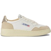 Autry Medalist Low sneakers combineren soepel wit leer en beige suede voor een stijlvolle uitstraling die bij elke outfit past. Het retro low-top ontwerp omvat perforaties in de tenen, een vetersluiting aan de voorzijde en een gevoerde zool voor comfort gedurende de dag. Een metalen hieltab en subtiele logo’s voegen een vleugje elegantie toe, passend bij de verfijnde stijl van de moderne vrouw.- Soepel wit leer en beige suede bovenwerk- Retro low-top silhouet- Perforaties in de tenen- Vetersluiting aan de voorzijde- Gevoerde zool voor comfort- Metalen hieltab- Discreet logo accentDe vermelde maten zijn Italiaanse maten. Voor de beste pasvorm, raadpleeg onze maatgids.