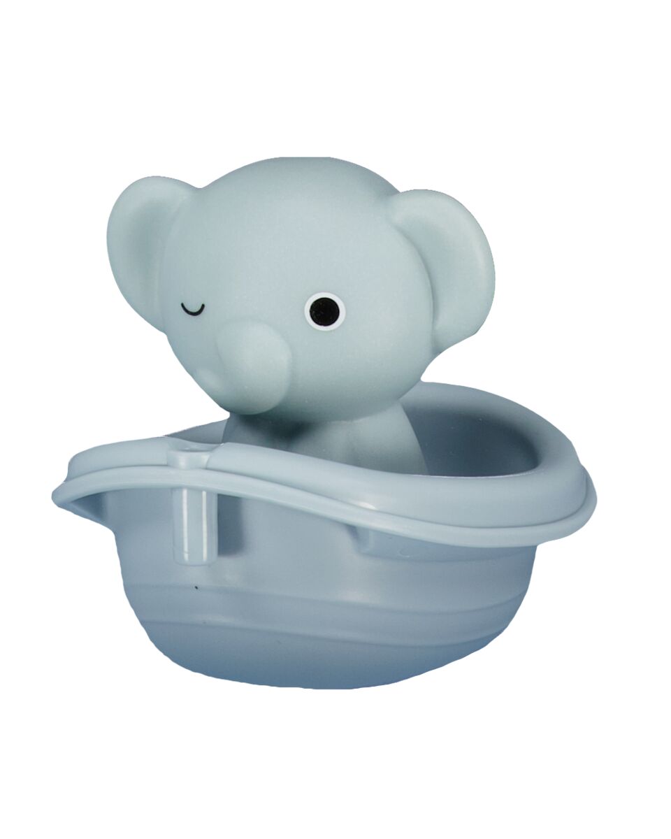 Dit badspeeltje is lichtblauw met wit en heeft de vorm van een olifantje met een vriendelijk gezicht. Leuk om mee te spelen in bad.