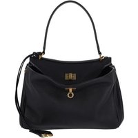 Deze exquise Rodeo-handtas van Balenciaga toont een zachte, gestructureerde zwarte leren buitenkant en een gestructureerd silhouet. Ontworpen voor veelzijdigheid, beschikt het over een enkele bovenhandgreep en een verstelbare, verwijderbare schouderriem. Het interieur biedt voldoende ruimte met twee aparte compartimenten, een ritszak en platte achterzakken, allemaal beveiligd met een draaisluiting. Vergulde hardware-accenten versterken de luxe uitstraling, terwijl metalen voetjes de basis beschermen.- Handgreep Hoogte: 18,5 cm – Schouderriem Hoogte: 56,5 cm – Materiaal: 100% leer – Kleur: Zwart – Herkomst: Italië