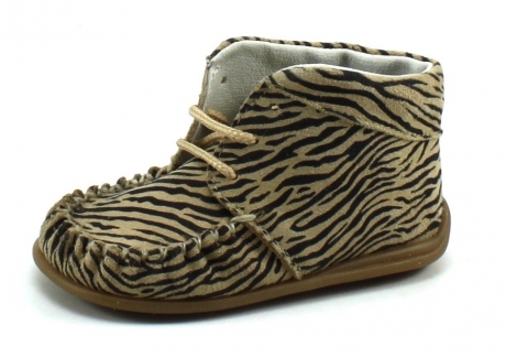 Camel-kleurige babyschoenen artikel Kimba in zebra motief van het Nederlandse babyschoenen merk Bardossa. De Kimba is voorzien van een flexibele zool, ideaal voor de eerste stapjes van je kindje. Verder is het schoentje voorzien van een vetersluiting, de binnen- en buitenzijde is geheel van leer. Koop jouw Bardossa Kimba babyschoenen online bij Stoute-schoenen.nl.