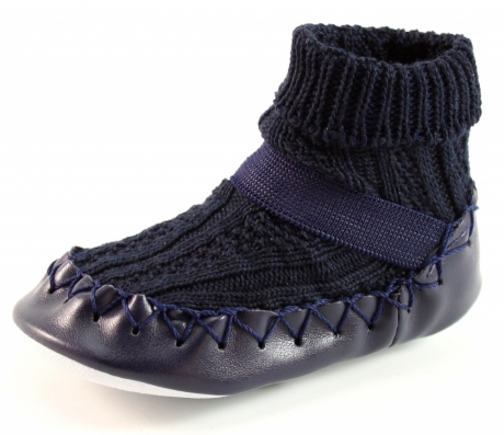 Blauwe gebreide sokpantoffels van het Nederlandse merk Bardossa. Bardossa sokpantoffels omsluiten de voet. Het elastiekje om de voet zit tot en met maat 21. Het bovendeel is met de hand op de sterke, leren zool bevestigd. Tussen de top en de zool is een isolatie- en schok-absorberende tussenzool aangebracht. Bardossa sokpantoffels zijn licht en gemakkelijk mee op reis te nemen. Bardossa sloffen zijn op 30 graden te wassen in de wasmachine. Koop jouw Bardossa sokpantoffels online bij Stoute Schoenen ©.
