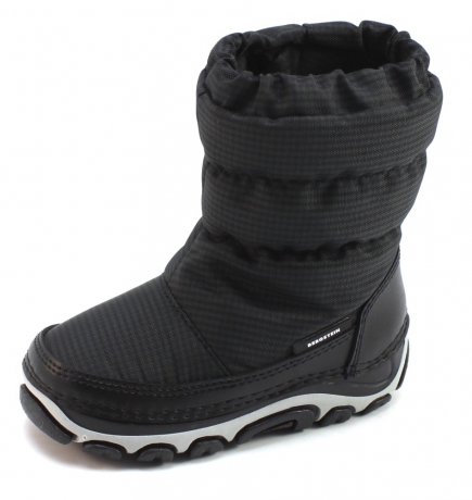Zwarte jongens snowboot van het regenlaarzen merk Bergstein, artikel 123 Snowboot,. Kenmerkend aan deze snowboots is het fijne zwart/grijze ruitjes patroon. Verder maken ze gebruik van warmte isolerende- en waterafstotende materialen. De snowboots hebben een rits aan de zijkant van de schacht, waardoor ze heel makkelijk aan- en uit te trekken zijn. Daarbij worden de snowboots van boven met elastiek strak afgesloten waardoor er praktisch geen sneeuw de boots meer binnenkomt. De zool is extra hoog zodat er een dikke isolatielaag wordt gecreëerd. Jouw kleine vent heeft gegarandeerd warme en droge voeten! Stoute Schoenen heeft elk seizoen een uitgebreide collectie regenlaarzen en snowboots van Bergstein. Koop jouw Bergstein snowboots online bij Stoute Schoenen ©.