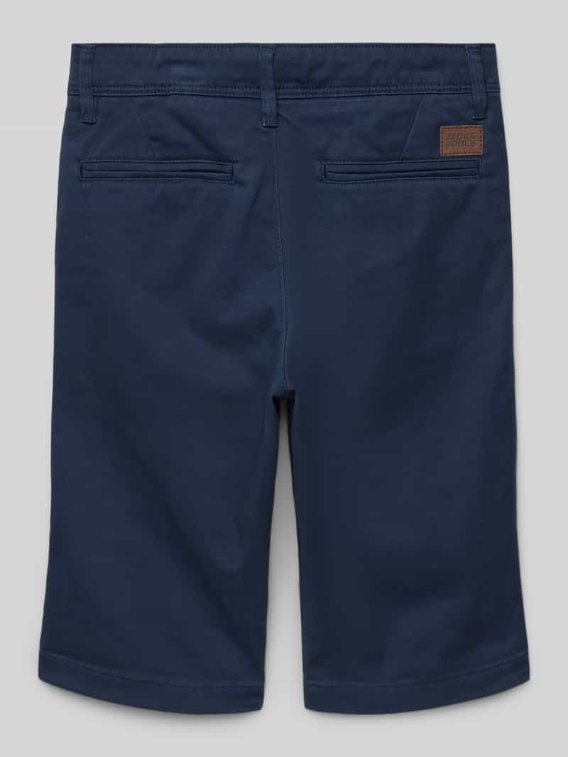Kinderbermuda van Jack & Jones;Katoenmix met stretchgehalte;Recht model;Model ‘BOWIE’;Knoop- en ritssluiting;Steekzakken opzij;Strookzakken aan de achterkant;Labelpatch;Bandwijdte bij maat 140: 34 cm;Binnenbeenlengte bij maat 140: 25 cm