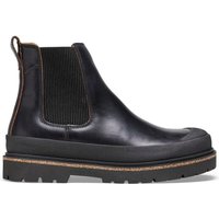 The Birkenstock Boots Black for women present a premium addition to any autumn or winter wardrobe. This sleek and modern boot features a classic black color with a smooth, polished finish, embodying sophistication. Designed in a Chelsea boot style, it includes elastic side panels and a convenient pull tab for easy access. The rounded toe, reinforced toe cap, and thick, textured sole offer durability and contemporary flair, complemented by subtle stitching for refined elegance.