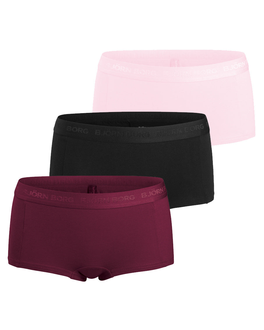 Björn Borg – Meisjes – Minishort Cotton Stretch 3-Pack – Rood/Roze/Zwart – Maat 98-104