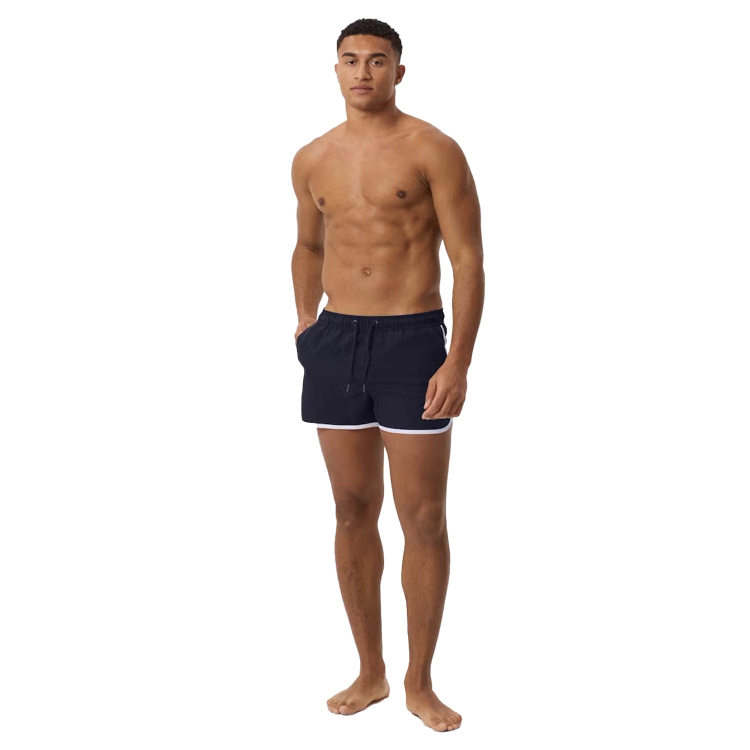 De Björn Borg Borg Retro Swim Shorts is een klassieke zwemshort gemaakt van 100% gerecycled polyester met een vochtafvoerende werking zodat het materiaal sneller droogt. Dit slim-fit design heeft een kortere lengte en is gestyled met een aansnoerbaar trekkoord in de taille voor een pasvorm op maat, eenbinnenbroek van mesh en zijzakken. De achterzak sluit met klittenband om je essentials veilig op te bergen en op de pijp vind je het iconische kenmerkende logo.