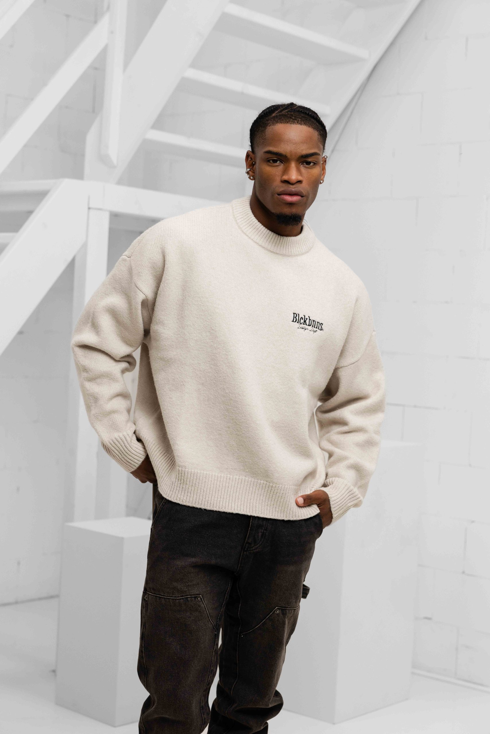 Black Bananas Knitted Sweater Heren Beige
