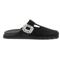 – Black Suede Slippers With Crystal Embellishments in zwart
