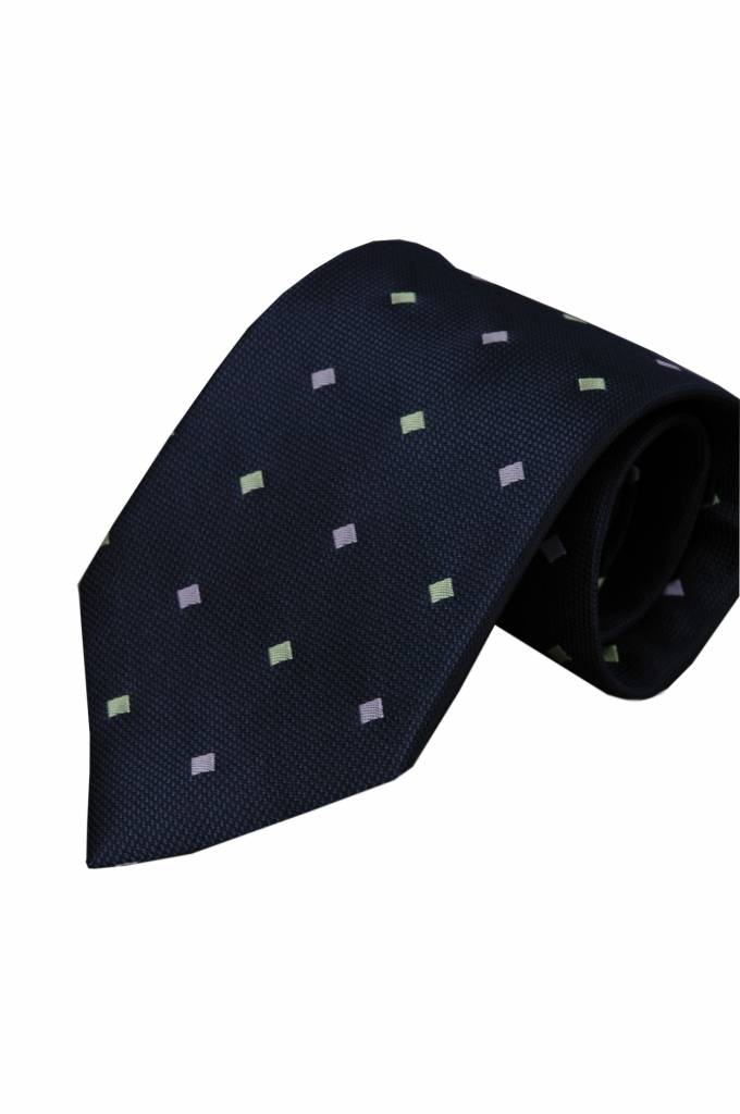 Blauwe stropdas m. lichtgroen & lila blokjes, uit Como, wereldhoofdstad v. zijde, Made in Italy, m. lusje en zadelsteek! Shop online bij Italian Design!