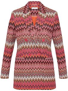 Blazer van ST.EMILE. Modestatement met power-dessin Accuraat verwerkt van zeer exclusieve, gebonden jersey. Perfecte look en subliem draagcomfort Met een diepe reverskraag, knoopsluiting, 2 paspelzakken en bewegingssplit achter. Lengte ca. 72 cm. Elastische voering van 67% acetaat, 33% polyester. Deze blazer is machinewasbaar. fijnwas tot 30°. chloorbleken niet mogelijk. koud strijken. niet chemisch te reinigen. drogen in de droger niet mogelijk. 42