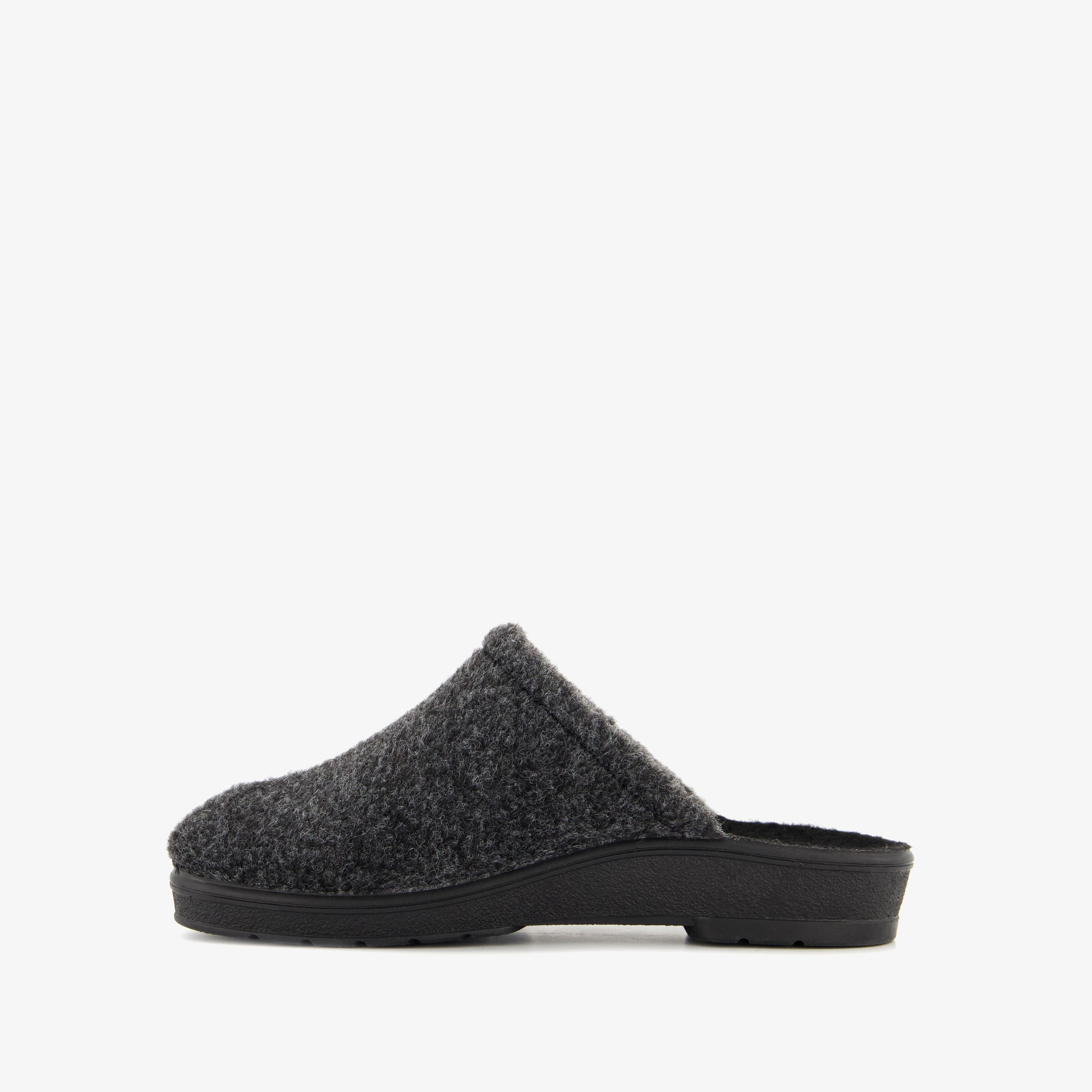 Zwarte muilen voor dames van Blenzo. Het boven- en binnenwerk zijn gemaakt van textiel en de stevige buitenzool met profiel is van rubber. De pantoffels hebben een makkelijke instap en comfortabel voetbed.