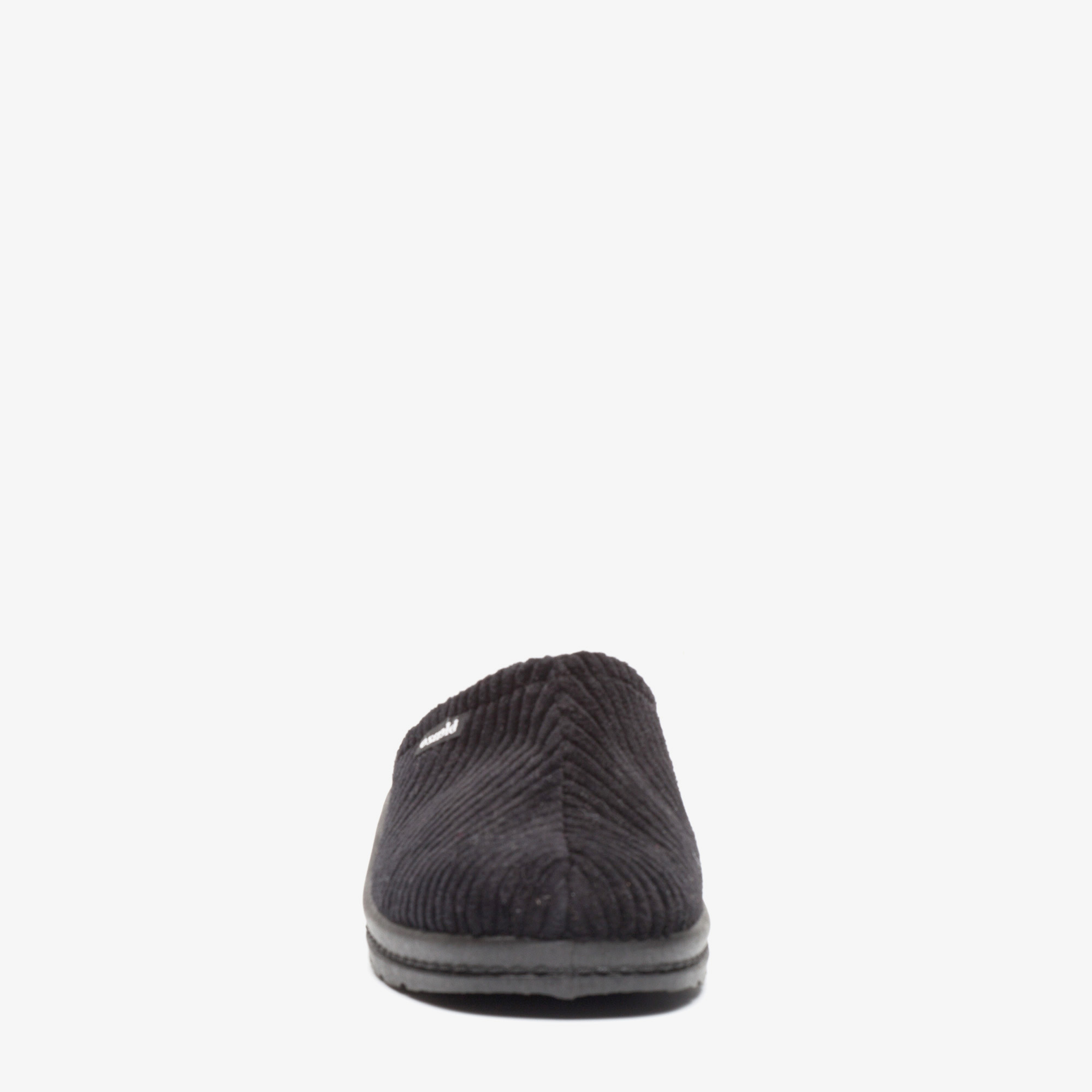 Blenzo heren muilen in het zwart. De instap muilen hebben een harde zool. De zool is gemaakt van rubber en de bovenzijde van textiel.