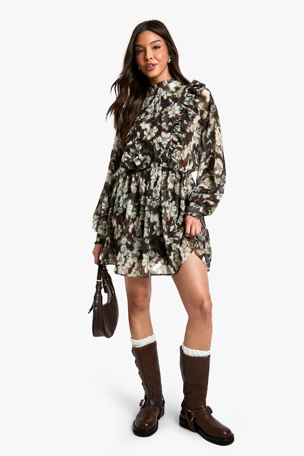 Bloemenprint Chiffon Mini-Jurk met Lange Mouwen