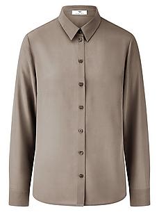 Blouse van PETER HAHN luxueus en uniek draagcomfort, elegante stijl. Soepelvallend model in lange overhemdblouse-snit met iets korter voorpand, afgeronde zoom en een stolpplooi achter. 100% zijde. Lengte ca. 70 cm. Deze blouse is machinewasbaar. fijnwas tot 30°. chloorbleken niet mogelijk. koud strijken. chemische reiniging, veilig. drogen in de droger niet mogelijk. 36, 38, 40, 42, 44, 46, 48, 50, 52