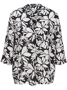 Blouse van BASLER met 3/4-mouwen met split en V-hals aan de ronde hals met opstaande kraag. Nieuwe bloemenprint in elegant zwart/wit met rozenaccenten. Voldoende bewegingsvrijheid dankzij de plooi aan de voorkant en zijsplitten. Iedere blouse is uniek. 100% viscose. Lengte ca. 65 cm. Deze blouse is wasbaar in de machine. fijnwas tot 40°. chloorbleken niet mogelijk. warm strijken. chemische reiniging, veilig. drogen in de droger niet mogelijk. 36, 38, 40, 42, 44, 46, 48, 50