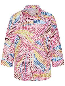 PETER HAHN blouse met manchetten aan 3/4-mouwen. Zomerfrisse look van gladde, huidvriendelijke popeline Dankzij het veelkleurige ontwerp past dit stuk bij veel outfits Elk stuk is uniek. Overhemdmodel met doorlopende knoopsluiting en licht afgeronde zoom. 100% katoen. Gecertificeerd volgens Standard 100 van OEKO-TEX®. Lengte ca. 65 cm. Deze blouse is machinewasbaar. fijnwas tot 30°. chloorbleken niet mogelijk. koud strijken. chemische reiniging. drogen in de droger niet mogelijk. 36, 38, 40, 42, 44, 46, 48, 50, 52