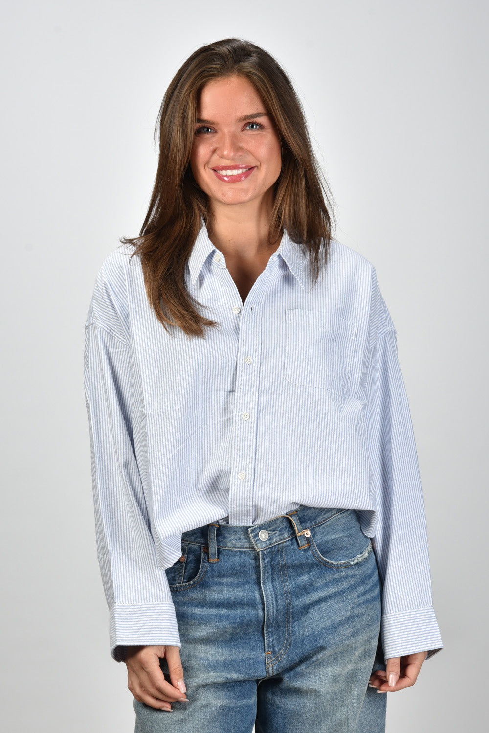 gestreepte blouse cropped button front blauw