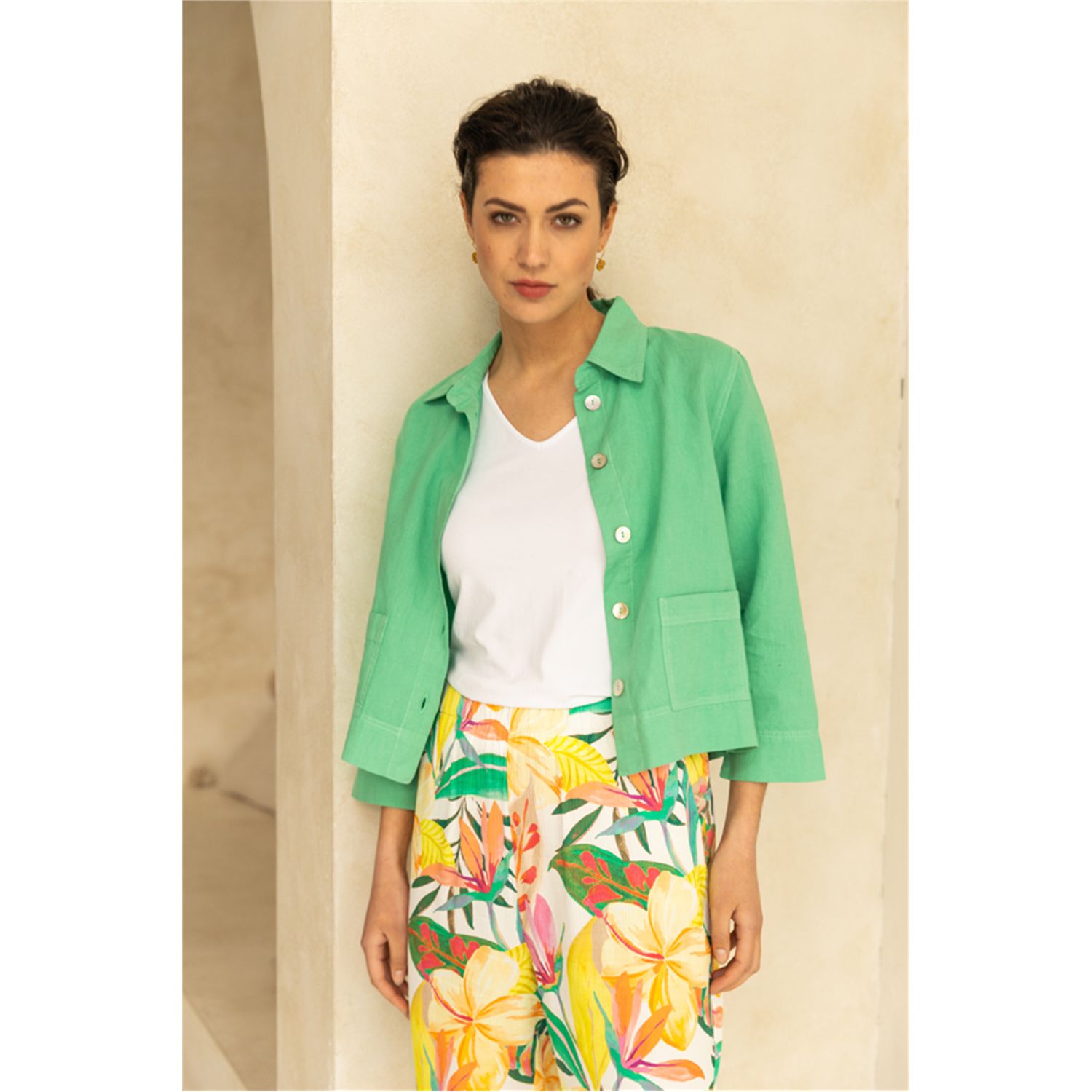 Sportief kort jasje in linnen/katoen menging met kraag en zakken