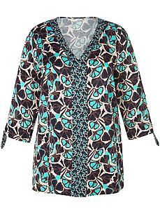 Overslagblouse van ANNA AURA met V-hals en 3/4 mouwen die opgerold kunnen worden. Voor elegante stijlen of casual outfits – deze blouse van vloeiende stof past bij je outfit De mix van een kleinere en grotere versie van het ontwerp voegt spanning toe aan de look. 100% viscose. Lengte in maat 42 ca. 72 cm. Deze blouse is machinewasbaar. fijnwas tot 30°. chloorbleken niet mogelijk. koud strijken. niet chemisch te reinigen. drogen in de droger niet mogelijk. 40, 42, 44, 46, 54