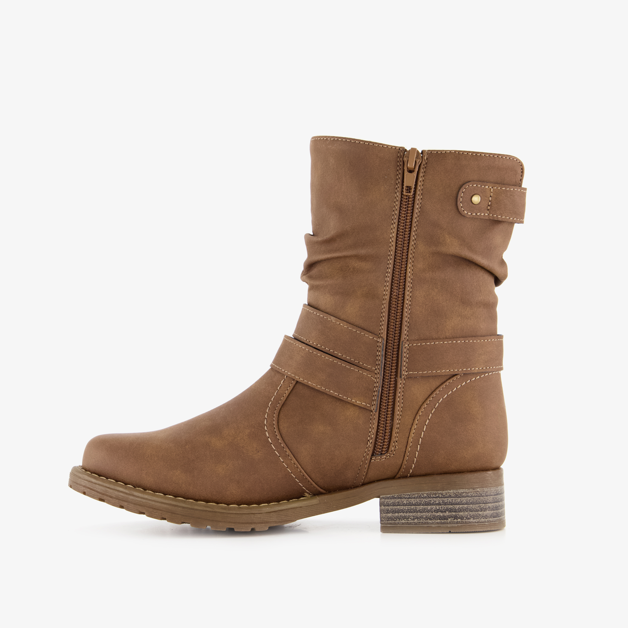 Blue Box gevoerde dames enkellaarsjes met gesp cognac