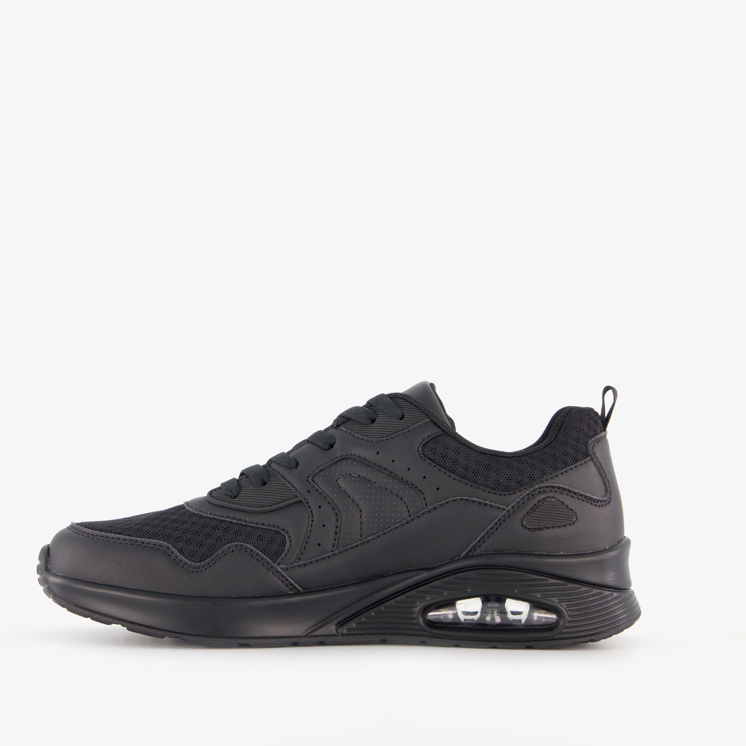 Zwarte heren sneakers van Blue Box. Gemaakt van imitatieleer, een binnenwerk van textiel en een rubberen zool. De sneakers hebben een vetersluiting en hiellusje. Het vaste voetbed is gemaakt van textiel. De sneakers hebben een air compartiment in de zool.