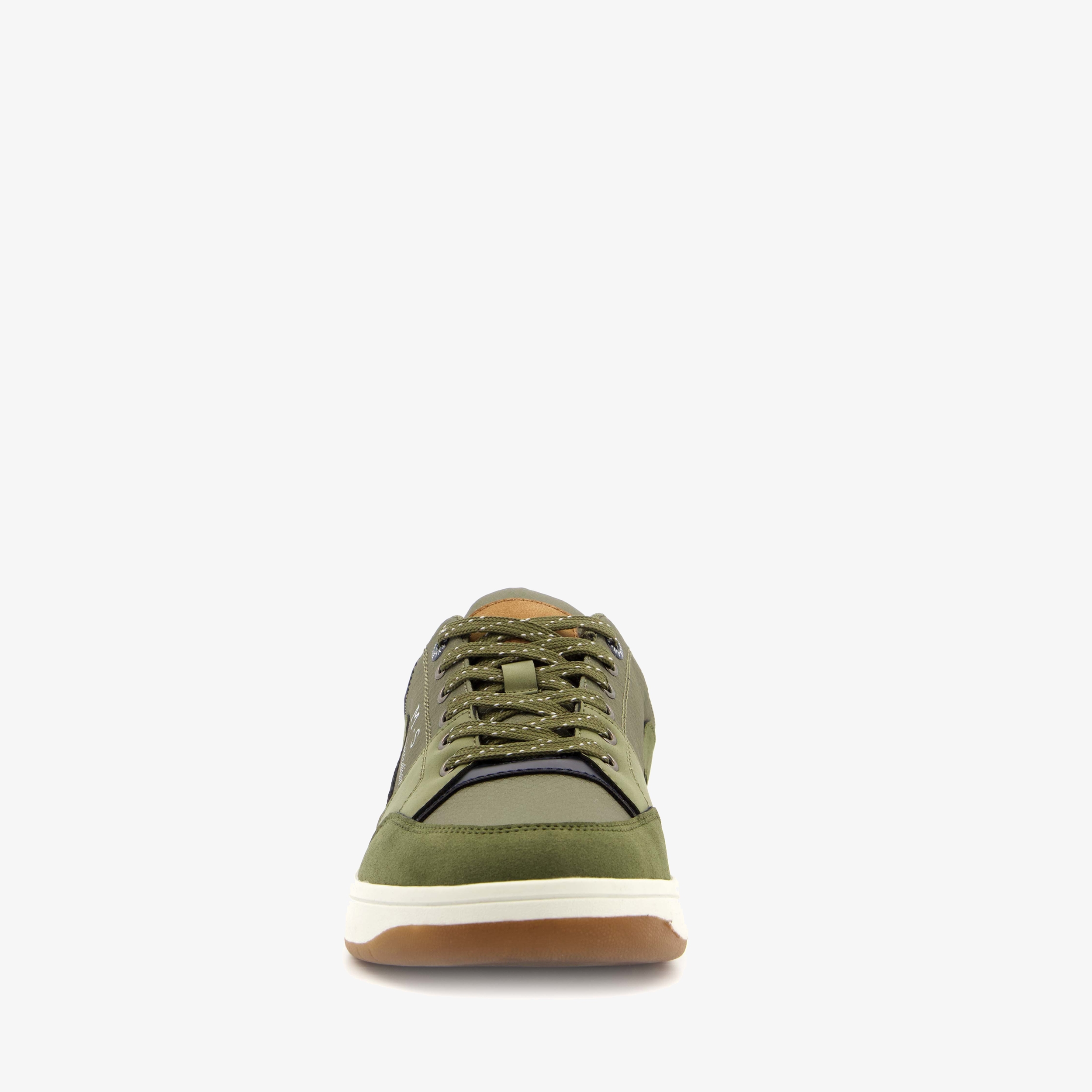 Groene sneakers van Blue Box voor heren. Gemaakt van imitatieleer met een binnenwerk van textiel en een stevige zool van rubber. Deze mooie sneakers hebben een vetersluiting en zijn voorzien van bruine, blauwe en witte details. Het comfortabele voetbed van leer is niet uitneembaar.